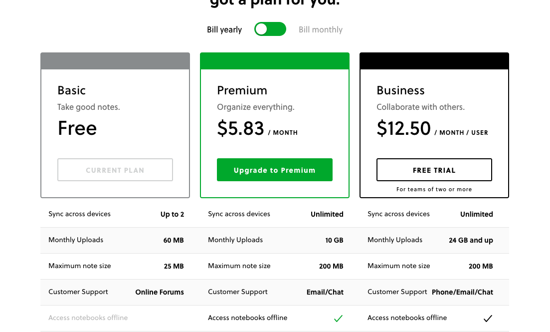 If you see the image above, you will see that Evernote now has a free trial for their business plan as well.